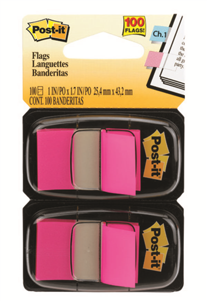 Post It Flags in Bright Pink and 1 in wide size let you mark a section of a book for easy reference later.