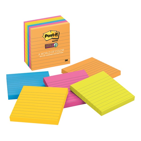 Post it Notes 6756SSUC Super Sticky Lined Assorted 6 Pack