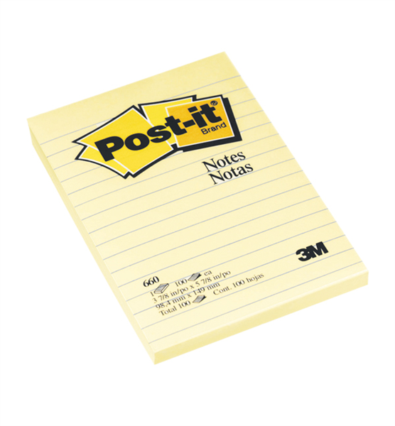 Post It Notes Pad Ruled 660 Canary Yellow (Sold as Each, 12 in a Pack)