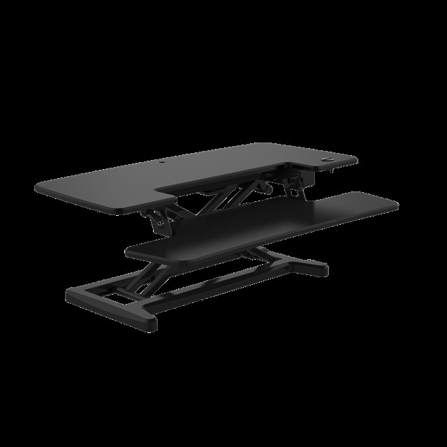 Rapid Flux Electric Desk Riser - Medium - Black Table Top Size - 950mm W x 415mm D - Keyboard Tray Size - 896mm W x 310mm D 25mm Per Second Motor Speed - <50DB Motor Noise - Quick Release Keyboard Tray Quick Installation - No Tools Required - Hidden-In Motor Make for a Clean and Compact Shape 25kg Loading Capacity 120 x 500mm Height Adjustment MDF Table Top and Keyboard Tray Black Control Panel Grommet Hole For Monitor Arm