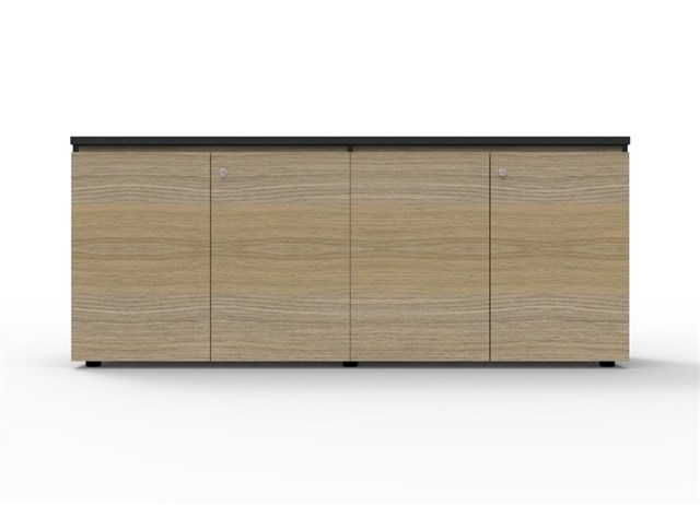 Deluxe Infinity Swing Door Cupboard - Natural Oak 1800mm W x 450mm D x 730mm H Finished In Natural Oak Laminate With Black Rigid Edging Lockable - Supplied With 2 x Keys Adjustable Levelling Feet Shark Nose Feature On Top Door Front For Easy Opening Soft Close Hinges 4 x Swing Doors / 2 x Lock E0 Rated Melamine Board 5 Year Warranty