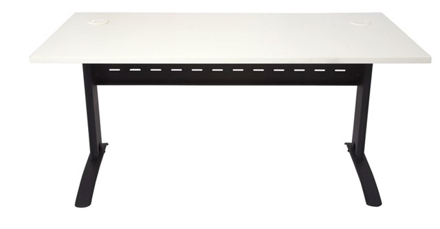 Rapid Span Open Workstation - Natural White Top with Black Frame 1800mm W x 700mm D x 730mm H Unique Span Leg with Matching Perforated Modesty Panel 2 x 80mm Dia