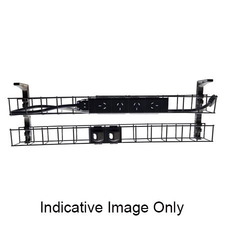 1 x Black Dual Tier Cable Basket - 1250mm Wide 1 x Quad Auto Switched Power Module, 1 x GPO Clip 2 x Data Tiles, 1 x 2M Interconnecting Lead 2 Year Warranty