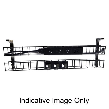1 x Black Dual Tier Cable Basket - 1550mm Wide 1 x Quad Auto Switched Power Module, 1 x GPO Clip 3 x Data Tiles, 1 x 2.5M Interconnecting Lead 2 Year Warranty