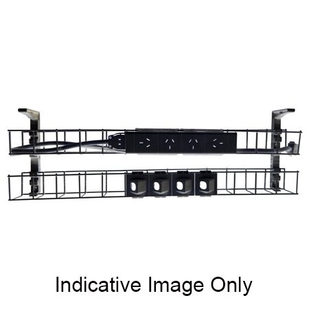 1 x Black Dual Tier Cable Basket - 1550mm Wide 1 x Quad Auto Switched Power Module, 1 x GPO Clip 4 x Data Tiles, 1 x 2.5M Interconnecting Lead 2 Year Warranty