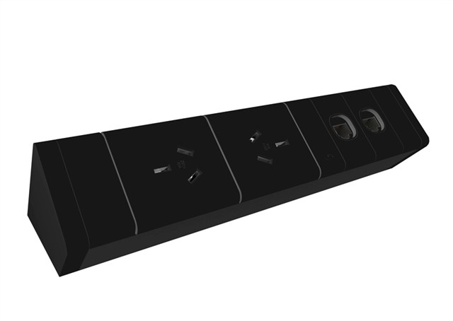 Athena Rail Kit - 2 GPO + 2 DATA - Black 2 x 10AMP Auto Switched Socket Outlet 2 x 25mm Data Tiles 500mm Tag Lead, D Splitter & Desk Clamps 2 Year Warranty