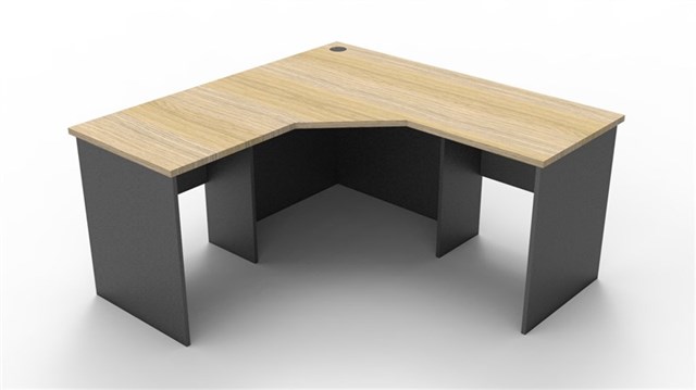 Corner Workstation - 3 Piece Construction - Natural Oak and Ironstone 1500mm x 1500mm x 600mm D x 730mm H 25mm T Worksurface and 18mm T Underframe 1 x 80mm Dia