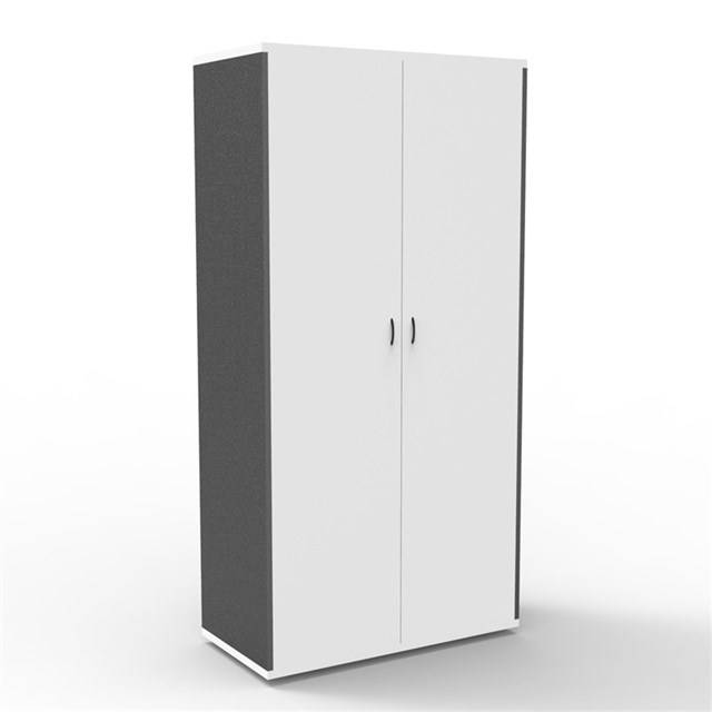 Full Door Cupboard - Natural White and Ironstone Includes 1 x Fixed Mid Shelf and 3 x Adjustable Shelves Fully Lockable - Includes 2 Keys 900mm W x 450mm D x 1800mm H E0 Rated Melamine Board Black P/C Bow Handles 5 Year Warranty
