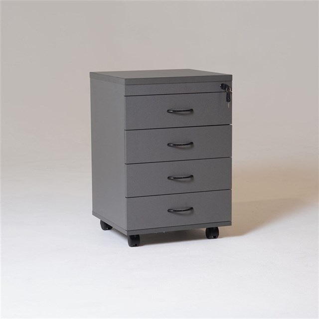 Mobile Pedestal - Ironstone All Over 4 Personal Drawers 447mm W x 465mm D x 690mm H Lockable With Metal Runners E0 Rated Melamine Board Black P/C Bow Handles 5 Year Warranty