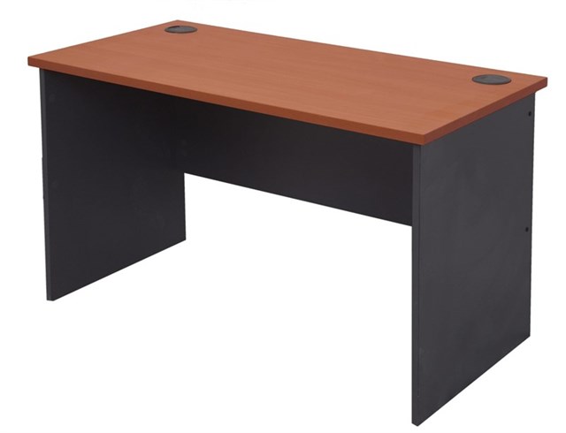 1200mm Open Slab End Workstation - Cherry and Ironstone 1200mm W x 600mm D x 730mm H E0 Rated Melamine Board 2 x 80mm Dia