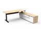Boost Plus Executive Desk *RIGHT* Hand Side Configuration With Modesty Panel - Natural Oak/ Black Satin Desk: 1800mm W x 750mm D x 620mm - 1270mm H Side Cabinet: 1800mm W x 500mm D x 520mm H Table Top Finished In Natural Oak With Matching Edge Tape - No Cable Entry Holes Or Scallops Includes Arch Perforated Steel Modesty Panel Finish In Black P/C - 1300mm W x 300mm H Side Cabinet Finished With Natural Oak Carcass - Natural White Drawer And Door Fronts Fitted With Black P/C Legs 2 x Pull Out Drawers 1 x Double Swing Door Cupboard 1 x Single Swing Door Cupboard With Adjustable Shelf Soft Close Hinges And Runners Drawers Fitted With Cyberlock 4 Digit Manual Combination Lock Boost Plus Height Adjustable Dual Motor Underframe Finished In Black Satin Powder Coat Digital Control Panel With 3 Pre-Set Positions, LED Display Panel, Keypad Safety Lock & Reminder Alarm Setting Anti- Collision & Anti-Tilt Technology Column Size: 90mm x 60mm Lifting Capacity: 120 Kg Max Speed: 38mm Per Second Adjustable Leveling Feet 1 x T Foot With 700mm W Foot Plate - 1 x Adjustable Leveling Foot Plate Steel Gauge: 3.0mm, 2.0mm & 1.5mm Used Throughout Max Speed: 38mm Per Second Noise Emission: <50DB Surge Immunity: 1kV(L1 to L2) / 2kV(L1,L2 To PE) ESD Protection: +-4.0kV ( Contact Discharge )/+-8.0kV ( Air Discharge ) Input Power: 110-240V Transformer Power:128W (.03W On Standby ) SAA and C Tick Certification 10 Year Warranty