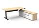 The integrated side cabinet provides convenient storage with drawers and cupboards, enhancing workspace organisation and efficiency.