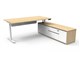 The integrated side cabinet provides ample storage with drawers and cupboards, enhancing workspace organisation and keeping your essentials within easy reach.