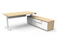 The integrated side cabinet provides ample storage with drawers and cupboards, enhancing workspace organisation and keeping your essentials within easy reach.