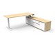 The integrated side cabinet provides convenient storage with drawers and cupboards, enhancing workspace organisation and efficiency.