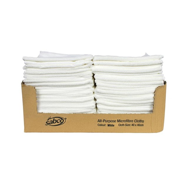 Sabco All Purpose Microfibre Cloths White 40cm*40cm 50 Pack Adelaide Direct Stationers