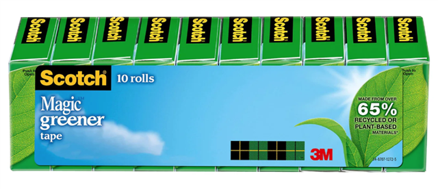 Scotch Magic Greener Tape offers the same trusted performance as classic Scotch Magic Tape, with a more sustainable design