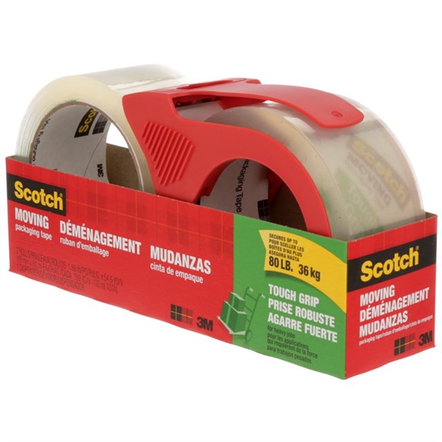 Scotch Tough Grip Moving Packaging Tape 48mm x 50m 2 Pack With Dispenser