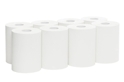 Each case contains 8 Long Roll Towels and each roll contains 140m of white paper towel