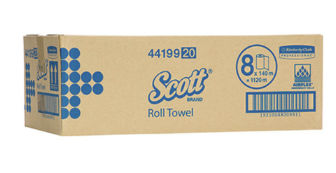 One Scott® roll hand towel measures 140m and one case contains 8 rolls