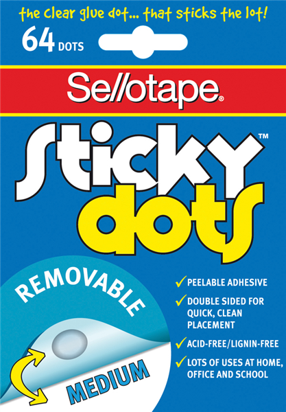 Sellotape Sticky Dots Removable 64 Pack Adelaide Direct Stationers