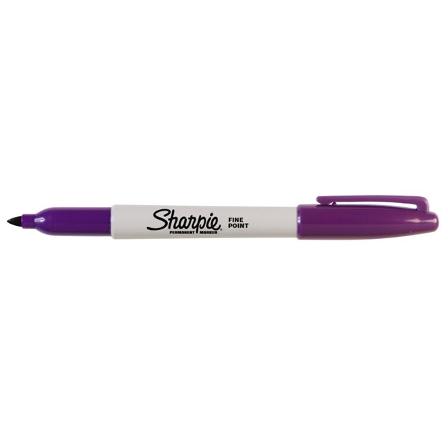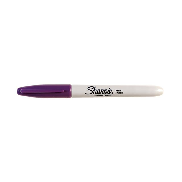 Sharpie Fine Point Permanent Marker Purple Bx12 features permanent ink that marks on paper, plastic, metal, and more
