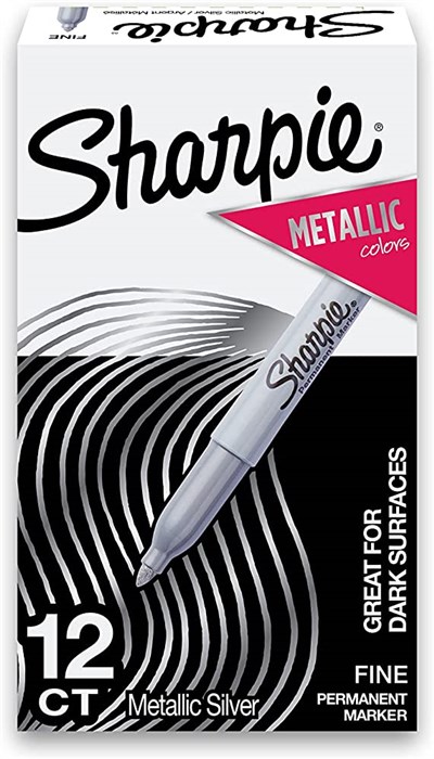 Sharpie Metallic Fine Point Perm Marker Silver Bx12 stands out on both light and dark surfaces