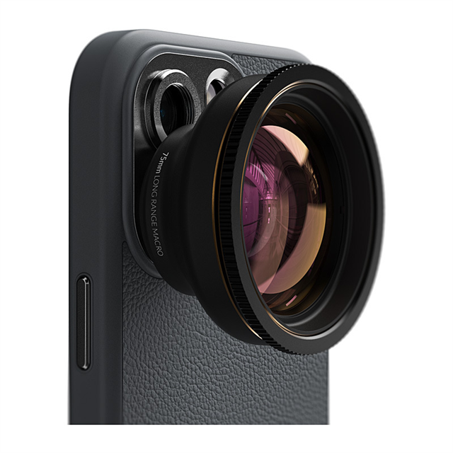 The ShiftCam LensUltra 75mm Long Range Macro Lens is a premium mobile optic with 10x magnification, uniquely designed to provide a longer working distance of 70-100mm (?2.8-3.9in)