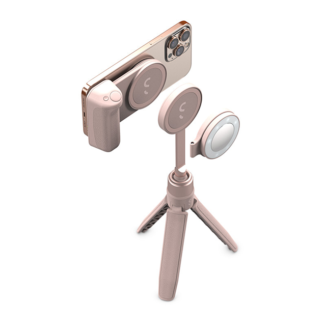 The ShiftCam SnapGrip Creator Kit is a magnetic, all-in-one system for mobile content creators, including the SnapGrip, SnapLight, and SnapPod, all matched in a Chalk Pink or Pink Pomelo color