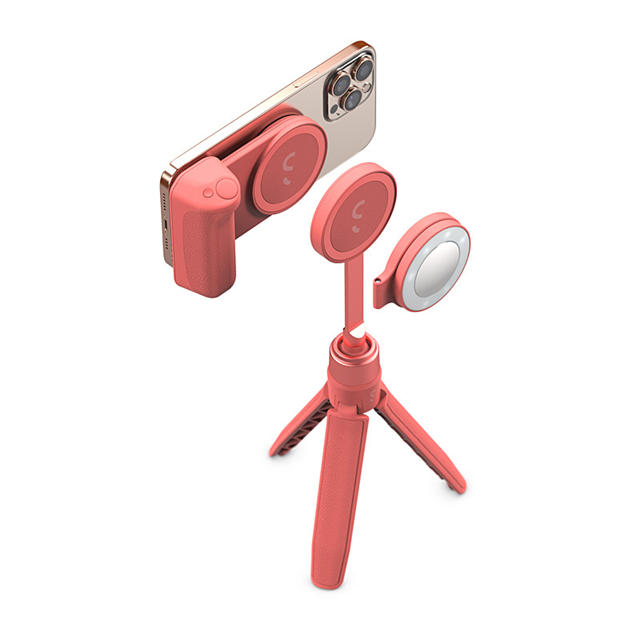 The ShiftCam SnapGrip Creator Kit in Pink Pomelo is a modular content creation system that includes the SnapGrip, SnapLight, and SnapPod