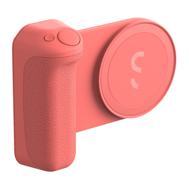 The ShiftCam SnapGrip Classic in vibrant Pomelo Pink provides an ergonomic hand grip for stable, comfortable one-handed shooting