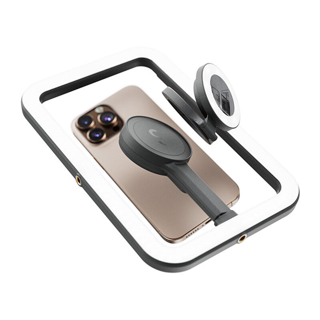 Professional, adjustable studio lighting that snaps onto your phone for superior, shadow-free mobile content creation.