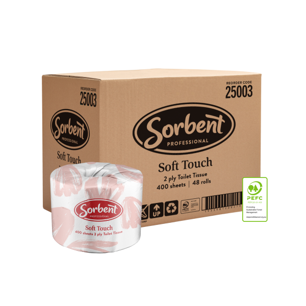 Sorbent 25003 Professional 25003 Soft Touch Toilet Tissue 2ply 400s (40 boxes per pallet) Adelaide Direct Stationers