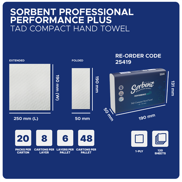 Sorbent Professional Performance Plus TAD Compact Hand Towel 1 Ply 120 Sheets