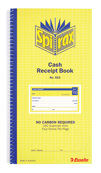 Spirax 553 Cash Receipt Duplicate Book Yellow (Sold as Each, 10 in a Pack) Adelaide Direct Stationers