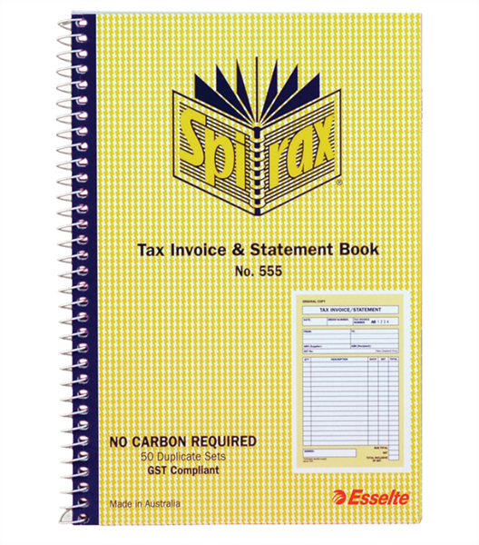 Spirax Invoice Statement Book Dup Colorless 555 (Sold as Each, 10 in a Pack) Adelaide Direct Stationers
