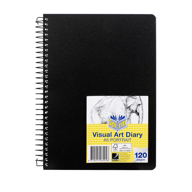 Spirax visual art diaries are side opening and contain a premium quality acid free cartridge paper with a sturdy back board that provides a strong writing surface.