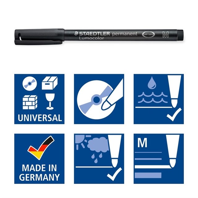 The permanent universal pens in the STAEDTLER Lumocolor series deliver really intensive colours for permanent marking on virtually any surface: glass, metal, overhead film, and much more.