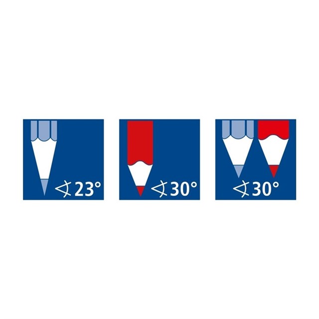 The double barrel can also sharpen thick blacklead and coloured pencils up to 10.2mm, with a 30° sharpening angle for smooth performance