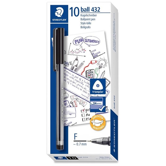 Staedtler Stick 432 Ballpoint Pens Black 10 Box