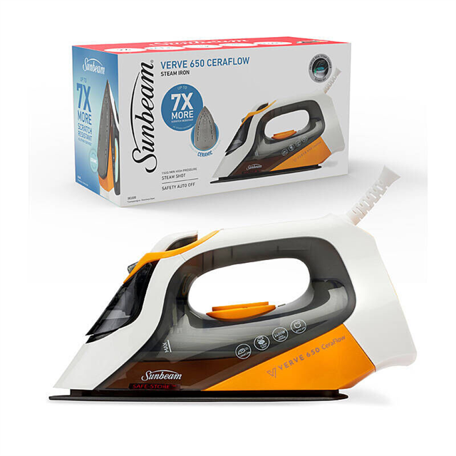The Sunbeam Verve 650 CeraFlow Iron features a powerful 2400W element for fast heat-up and continuous performance