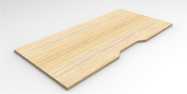 TOP 1500/750/25 WITH 50mm RADIUS CORNERS ALL ROUND AND SCALLOP TO REAR FINISHED IN TASMANIAN OAK MATT WITH MATCHING EDGE Adelaide Direct Stationers