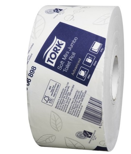 Compact medium capacity toilet tissue system ideal for busy washrooms, reduces servicing time Quality Advanced 2ply tissue Long 200 metre roll reduces the risk of run-out FSC Certified Fits all Tork T2 Mini Jumbo Dispensers