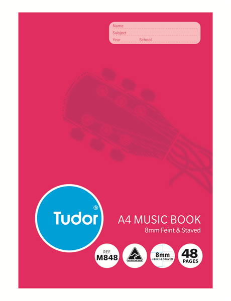 Tudor Music Book Feint Ruled A4 48 Page (Sold as Each, 20 in a Pack) Adelaide Direct Stationers