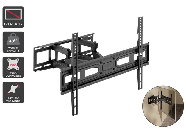 Whether it’s a lightweight LED or a large plasma screen, rest assured your TV is securely held at any angle