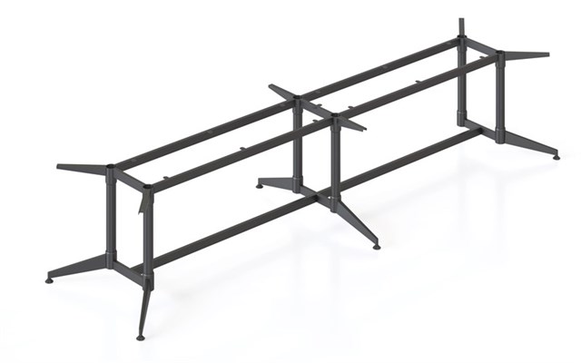 Typhoon Meeting Table FRAME ONLY - Dual Stage - Black P/C All Over 3542mm W x 1112mm D x 725mm H Black P/C Frame With Black P/C Foot Adjustable Leveling Feet 2.0mm T Steel Used Throughout Suits Table Top Width: 3600mm - 4200mm Suits Table Top Depth: 1150mm - 1500mm 5 Year Warranty