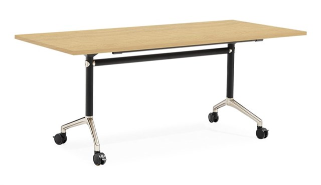 Typhoon Flip Top Table - Natural Oak Top 1800mm W x 750mm D x 750mm H Polished Aluminium Feet, Black P/C Post And Rail Locking Castors E0 Rated Melamine Board 5 Year Warranty
