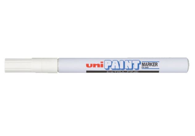 Uni Paint Marker PX-203WH Ultra Fine Tip 0.8mm BX12 White Permanent Bullet