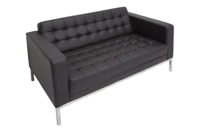2 Seater Venus Lounge - Black PU Stainless Steel Underframe Black PU Leather Upholstery With Button Stitching Detail Throughout Tested To BS EN 12520:2015 200 Kg Weight Rating 3 Year Warranty
