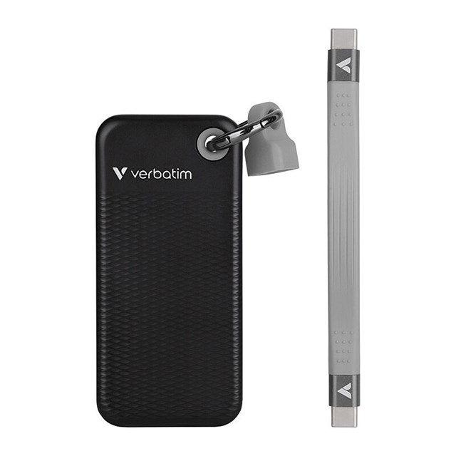The Verbatim Pocket SSD offers 1TB of flash memory storage within a compact, ultra-lightweight (58g) and rugged fireproof polycarbonate enclosure